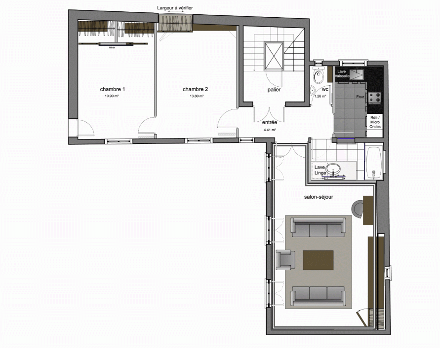 meters (800 sq. ft.) on the 5th floor (4eme etage), facing south toward