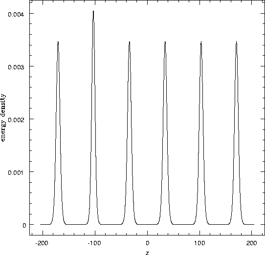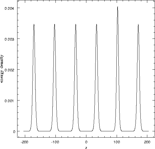 intial velocity. Plotted is the energy density vs distance.