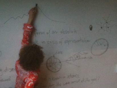 Students, and other monads, in “Arts and Philosophies of the Fold,” spring 2015. Photo: Laura Marks