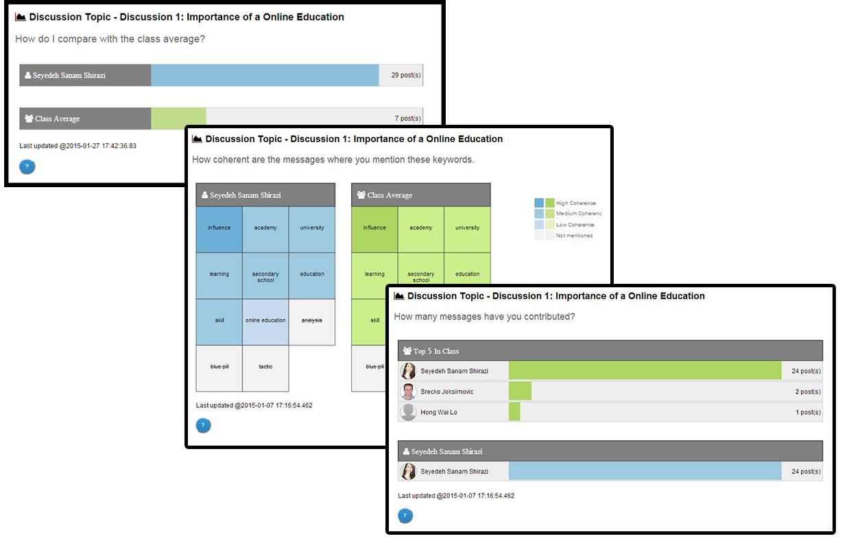 The learner model is a form of a user model that the system builds about the learner. It typically captures what the learner knows, how she interacts with the system, how she engages in learning activities, what grades she gets from the graded activities, and how she engages with other students. Such a model is used by algorithms to adapt or personalize some of the system behaviour, such as provide suggestions to the learner what to study or recommend additional resources or peers to interacts with. When we present the model or some aspects of it to the learner, we call it an Open Learner Model (OLM). OLMs) have been applied in many traditional (desktop) online learning settings as well as in mobile learning. OLMs can fulfill several purposes, of which five are directly related to student’s learning: 1) promote learner reflection, 2) facilitate self-monitoring, 3) support planning, 4) encourage learners’ control and responsibility for their learning, and 5) provide a source of information for competitive interaction. OLMs are one of the tools at the center of the newly formed field of Learning Analytics (LA) that is largely concerned with improving learner success through analyzing data about the learner(s) and presenting them to stakeholders for further analysis and action.