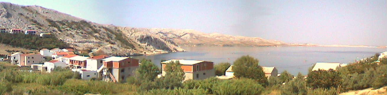 At the moment of preparing this HTML file, I am sitting on the balcony of an apartment in a little (used-to-be) fisherman village Metajna on the island Pag in Croatia. Click on thumbnails below to check for the beautiful view I enjoy at this time (taken with my notebook's built-in camera). It is vacation time and extreeeemely hot (in the 30's also during the night, so that I have to sleep outside). In the mornings and evenings I steal some time to work, in the mid-day I follow the siesta habits, while in the afternoon, when winds get stronger, I do some wind surfing in the inlet that you can see on the photo below.
