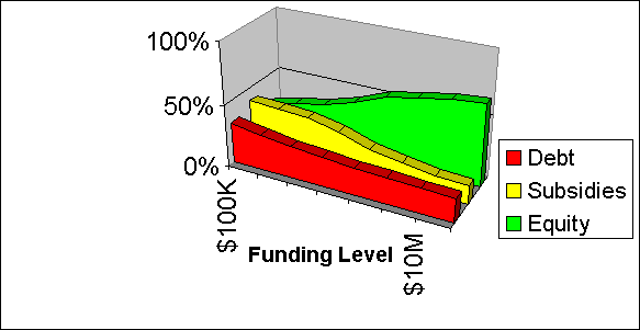 Funding a company is an exercise in packaging. There should always be a nice rainbow of colors in the corporate finance strategy. For example, even if you could satisfy your capital requirements with equity investment, why short-change yourself by not taking advantage of various government programs? Your competitors will if you don't!