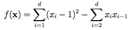 Dimensions: dThe Trid function has no local minimum except the global one. It is shown here in its two-dimensional form.