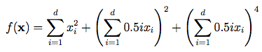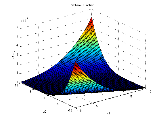 Dimensions: dThe Zakharov function has no local minima except the global one. It is shown here in its two-dimensional form.
