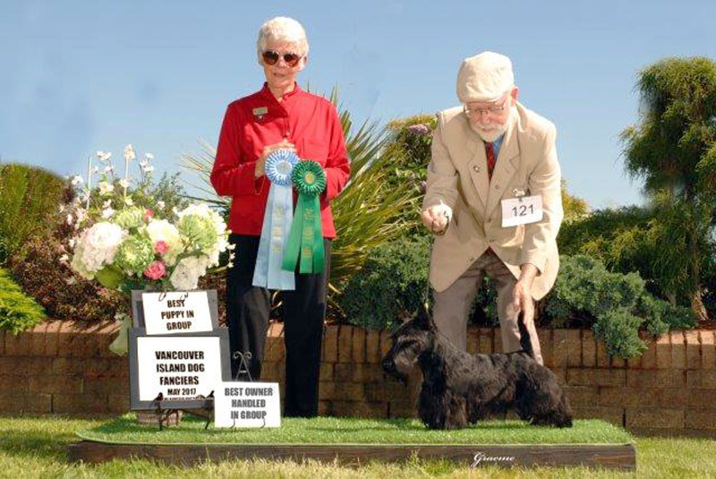![]() At 9 months of age, Dougal goes Best of Opposite over Male Specials under Scottie breeder judge Jim Reynolds! |