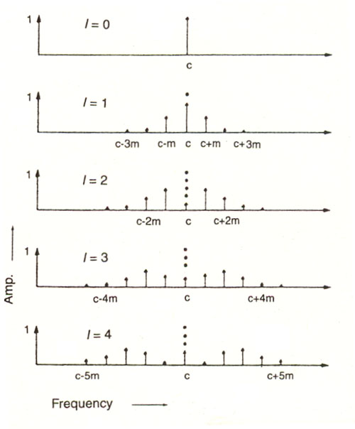 Growth of the spectrum (i.e. number of sidebands) with modulation index