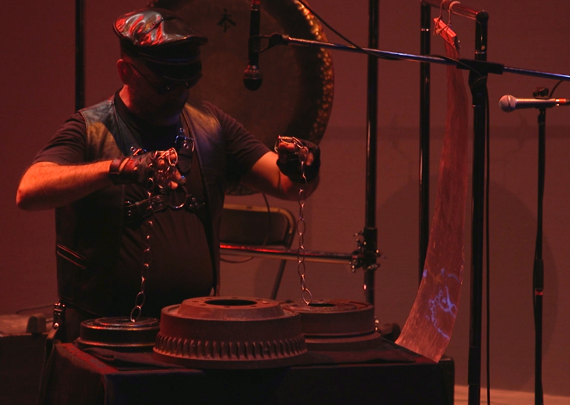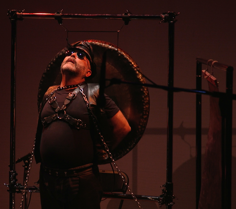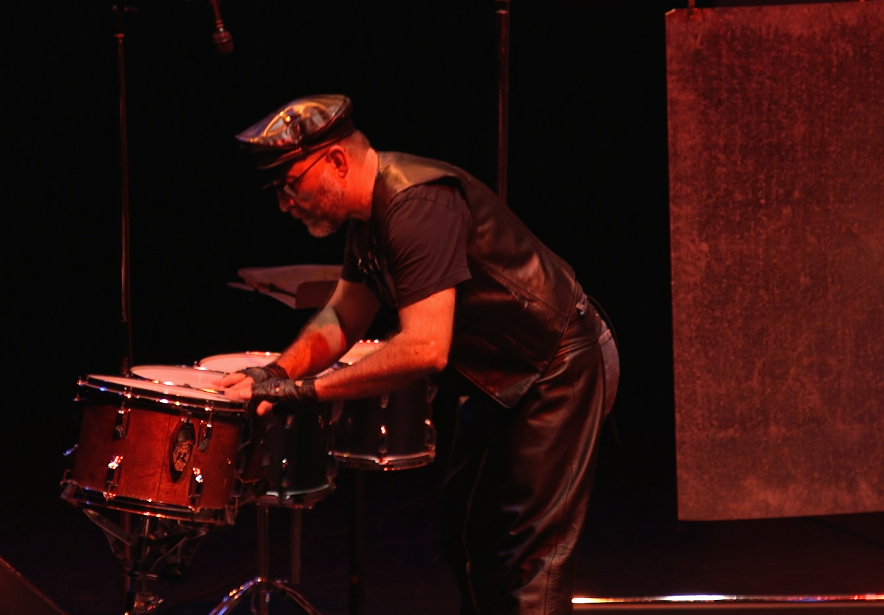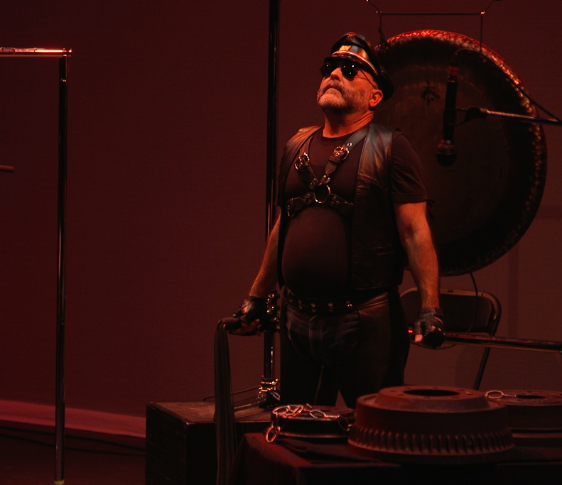 Skin & Metal is a music theatre work designed for a performer dressed as a "leather man" playing only drums and metallic instruments using "skin and metal", that is, bare hands, leather and metal objects to activate the instruments. The subtext of the work is the demimonde of S&M, and evokes the eroticism associated with it. Although the performer dominates the instruments, he or she can also be dominated by the equally powerful tape component that is constructed from transformations of the same instrumental sounds, so it is unclear who is the active and passive partner.The work was commissioned by CONTACT contemporary music and is dedicated to Jerry Pergolesi who first brought it to life. See also the article in Musicworks.