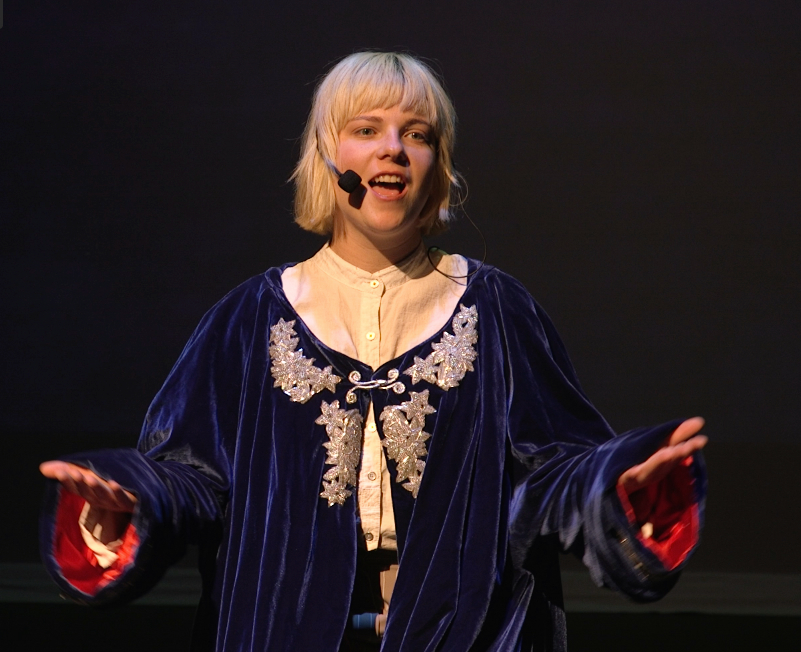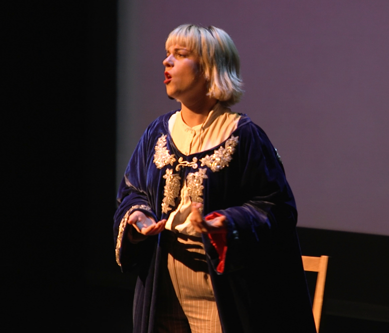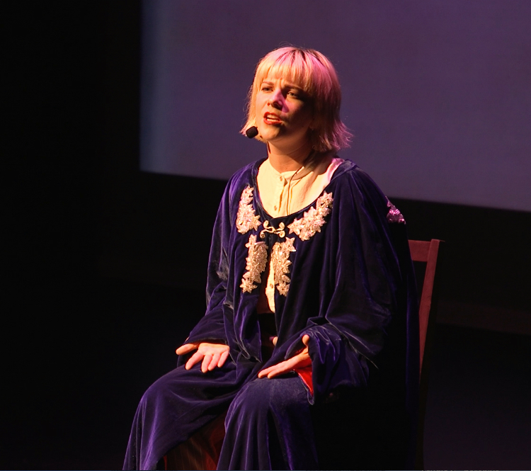 The Sibyl, also a part of Powers of Two, as a character represents traditional knowledge but she must find a successor, and does so in the person of a young journalist, a lesbian, who extols the new Golden Age represented by television, and simultaneously falls in love with the female models portrayed there. The Sibyl criticizes the falseness of these images and encourages her to forsake the materialism represented by the world of advertising. The Journalist does so through a symbolic death in which the Sibyl's cape is used to cover her, with a musical reference to Berg's Lulu. She is 'reborn' as Sappho to become the new Sibyl.