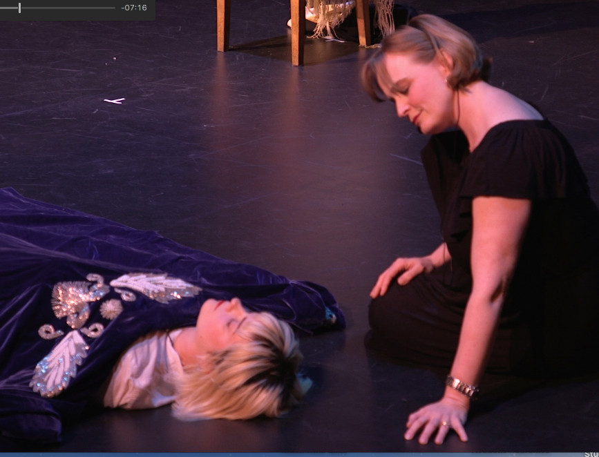 a video with dancer, male double bass player and two digital soundtracks; Text: Tennessee Williams
