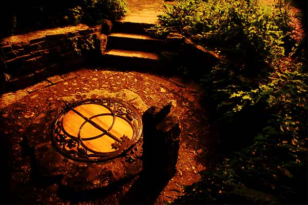 Chalice Well is a holy well situated at the foot of Glastonbury Tor in southwest England, thought to be originally the island of Avalon from Arthurian legend, and the site where Joseph of Arimathea placed the chalice known as the Holy Grail. According to legend, the Tor, a masculine symbol, is hollow underneath and the entrance to the underworld, guarded by the Grail. The well, on the other hand, is a symbol of the feminine aspect of deity, and its waters are believed to possess healing qualities.