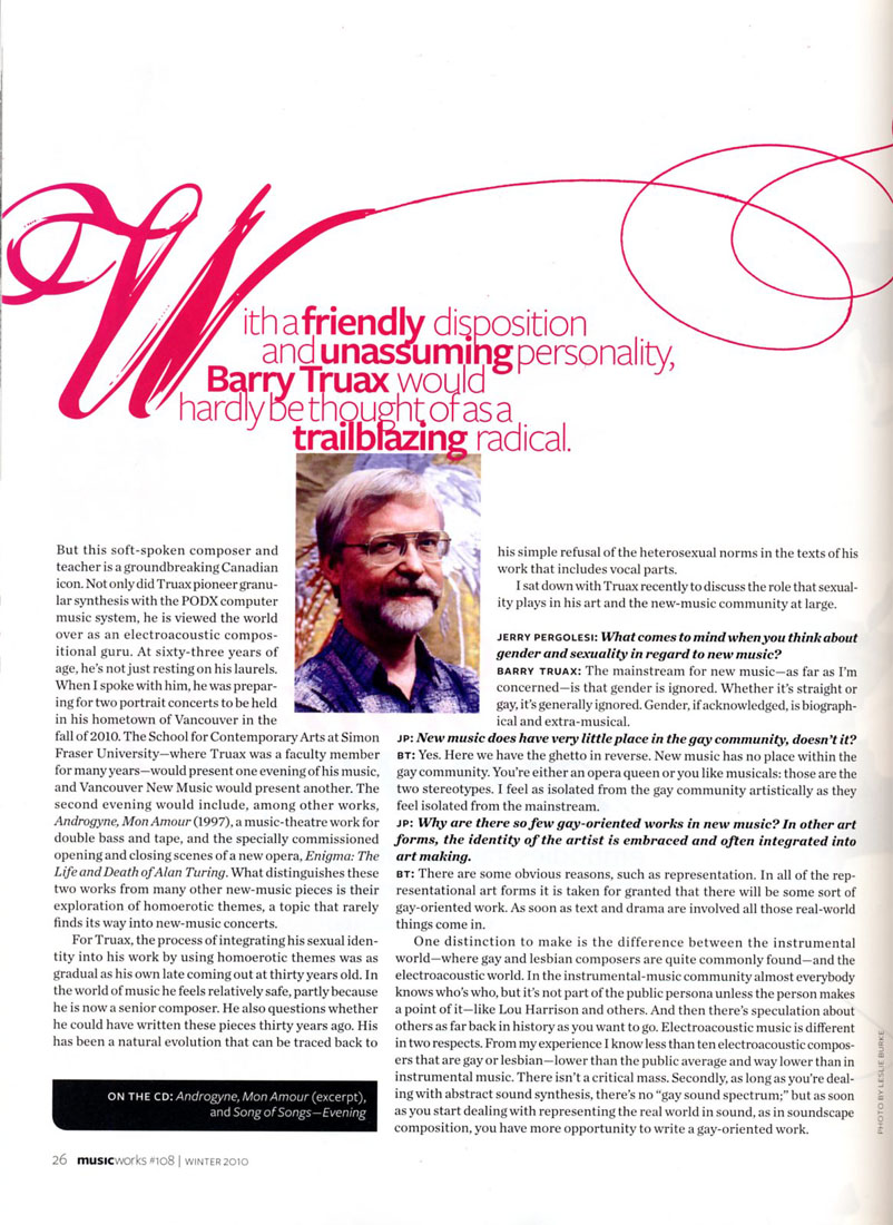 Barry Truax: Composing a Fine Line, Embodies Gay Identity Through New Music