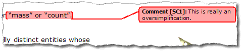 As a linguist, you will probably be working with other people on a document. Word includes tools for annotation that are more legible and easier to email than scribbling in the margins of an essay. Comments added using these tools can “point” directly to items in the text, and can be automatically incorporated into the document or removed altogether. These tools are accessible from the Review toolbar in Windows 2013.