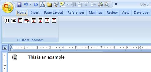 In order to number an example, simply place the cursor exactly where you'd like the example number to appear (to the left of the example), and press the first button in the Toolbar.