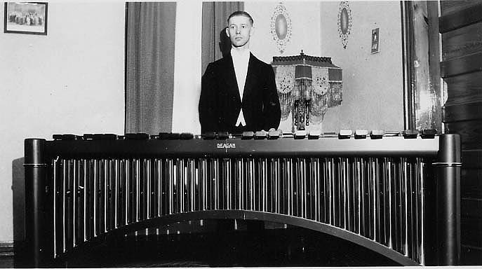 Arnold Truax with the Deagan "No. 70 Imperial" marimba, ca. 1939.