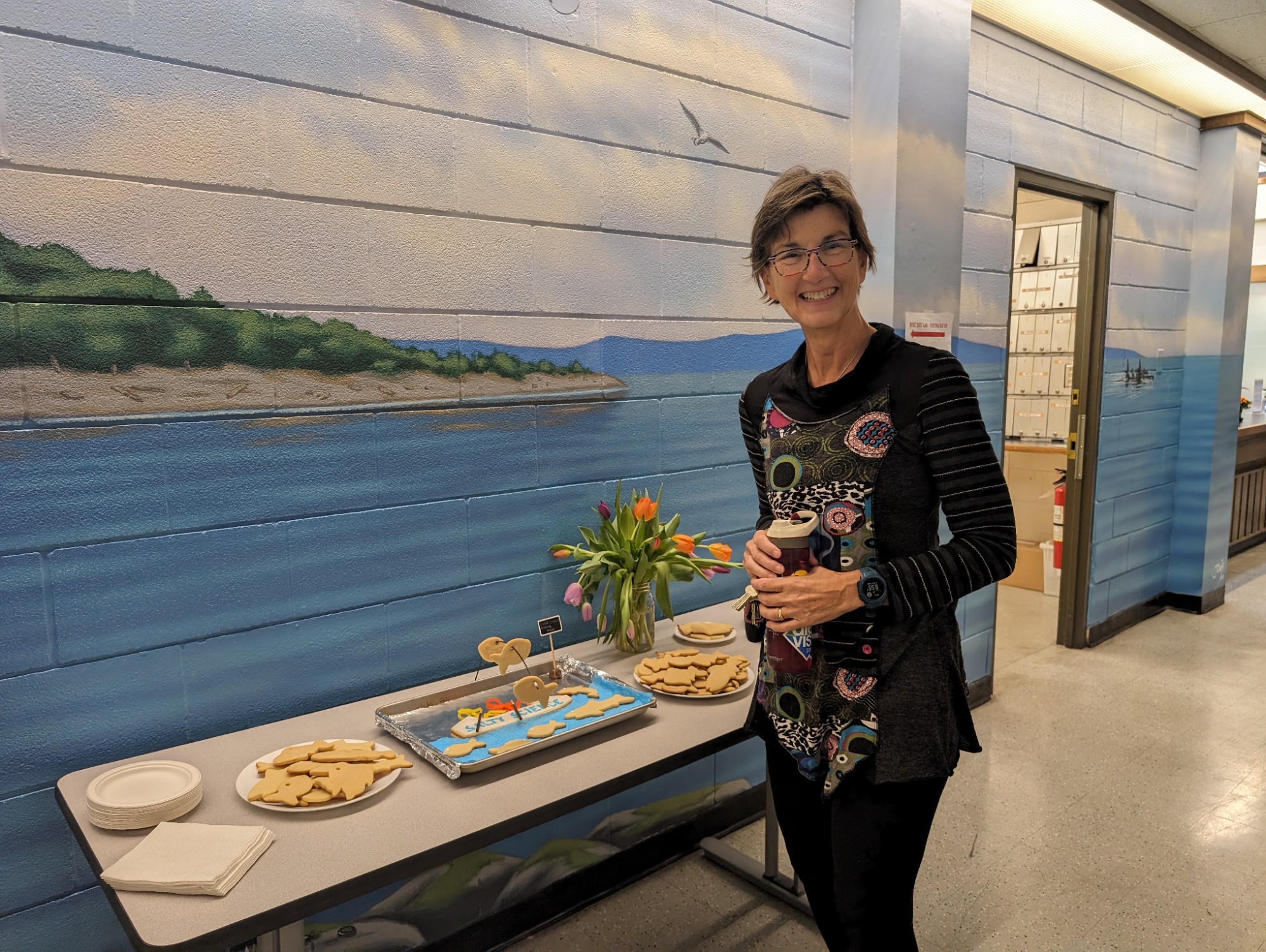 Our Friday departmental coffee break had a Salty Science theme this week. Prof Isabelle Côté, who just rowed across the Atlantic with three other women marine biologists to raise funds for ocean conservation, shared some of the funny and scary moments of the crossing, while enjoying a delicious baked version of her rowboat Emma (complete with flying fish!).