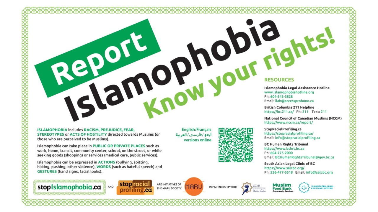 The Islamophobia Legal Assistance Hotline: Call 604-343-3828