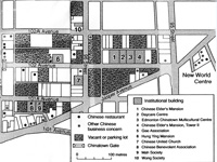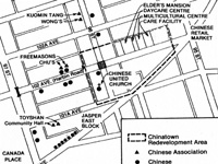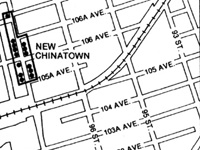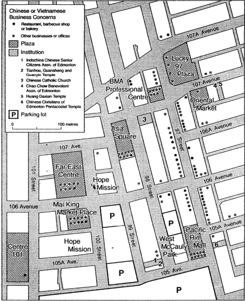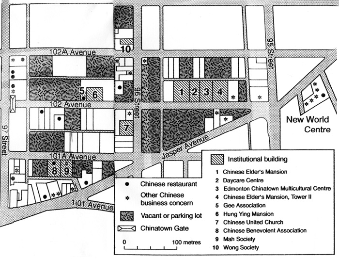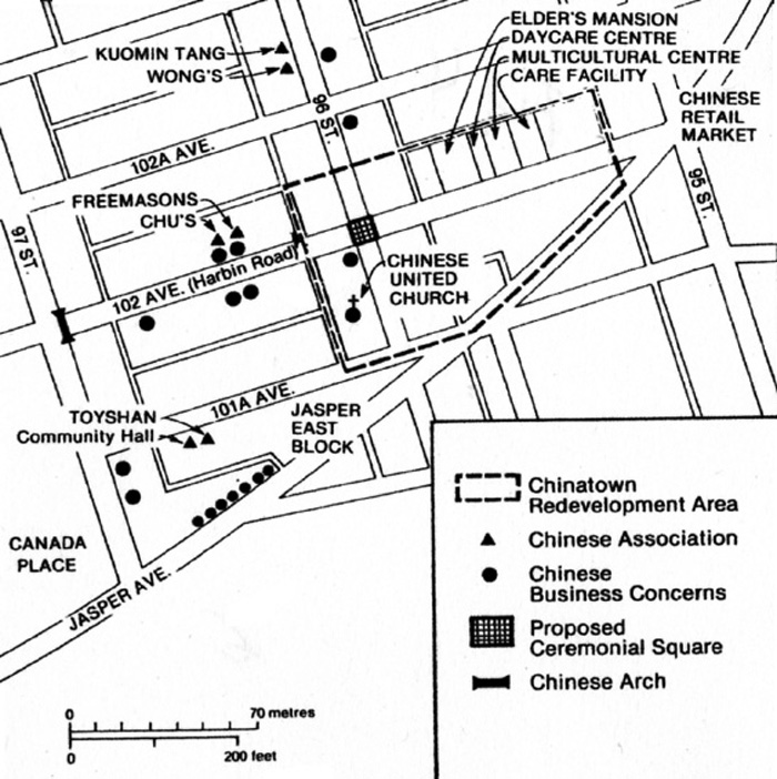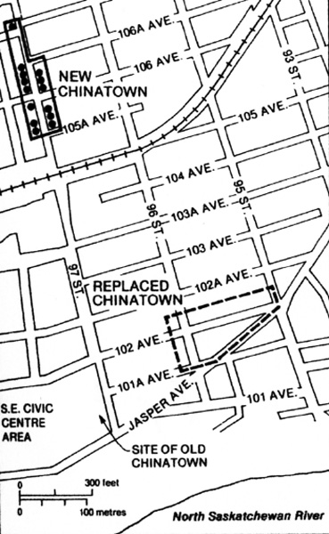 在1899年,愛民頓只有13位華人,一間餐廳和兩間洗衣店。而在士達孔拿鎮,亦可能只有五、六位中國人。在其後的十多年中,由於中國居民稀少又分散居住,所以他們不需要一個社交或進行經濟活動的聚腳點。直到20世紀初,隨著一些中國商人將生意開設在Namayo 街 (現為97街) 和米街 (101A大道) 的交界處,一個小型的唐人街(華埠) 才在愛民頓市中心出現。