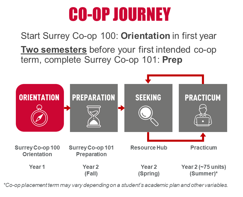 After successfully completing the Surrey Co-op 101: Preparation course and fulfilling all of the requirements, students will be eligible to apply for co-op jobs in the following term. Co-op work terms are not guaranteed. Students need to apply for posted positions actively, and employers determine who to interview and hire.