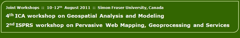 For those who would like to stay on the Burnaby campus, accommodation is reserved for participants in private residence rooms and townhouse units at special discounted rates. In order to book these accommodations, visit the SFU-Accommodations website and choose "ICA-ISPRS Joint Workshop" under Group Bookings. These rates are for a limited number of rooms and will be held until June 30th 2011.