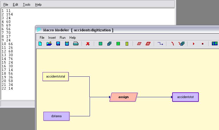 For organizational purposes, each neighborhood was assigned a unique numerical value between 1 and 22 (as shown below) and were later assigned the statistics for motorvehicle thefts and vehicle accidents (two separate raster files). This was done using the ASSIGN module and an Attribute Values File (shown below):