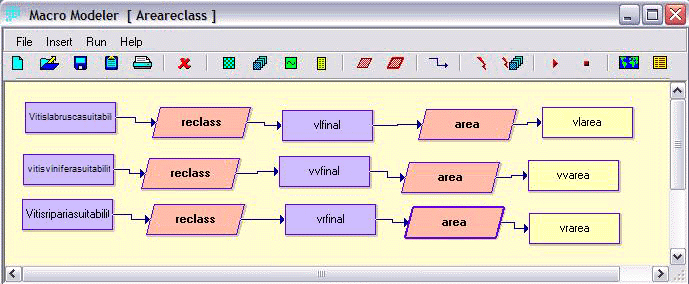 A pallete was used to show the reclassed images. The value of 4 was given to the most suitable locations. The module Area was then used to calculate the area of the suitability of each grape to the GVRD.
