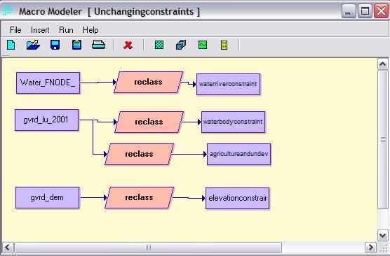 The GVRD DEM and GVRD landuse files were already in IDRISI format and were simply added to the project file. The GVRD water file needed to be converted from ArcGIS to IDRISI format and was done through the use of import in the files tab that converts Arcshapefiles to IDRISI. This file was converted to a raster file through the use of the Polyras module.