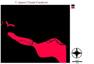 The climatic zone for this species in the GVRD was consider to be Eastern dry ( a value of 2) because of its ability to survive cooler temperatures. The Climate image file was reclassed to give a value of 1 to this zone and a value of 0 to all other zones.