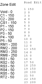 The Zone/Road edit value