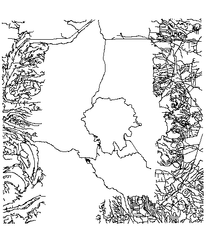 There are WAY too many roads here! They needed to be trimmed to just the main roads. I produced a new vector file "roads", created with the results of an SQL query. As well, for aesthetics, I changed their color to grey, and widened them. I also digitized text to identify the roads. This created the layer "roads":