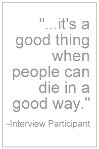 Drs. Schuurman and Crooks’ joint research in this area has also involved conducting interviews with formal and informal palliative care providers to better understand how access to care is experienced on-the ground. These interviews have revealed a number of important issues regarding the provision of palliative care in rural British Columbia. They have also used these qualitative interviews to refine their spatial approach to identifying communities in most need of enhancing palliative care service provision. This qualitative research has also been leading to a new focus on the provision Aboriginal-focused palliative care in particular.