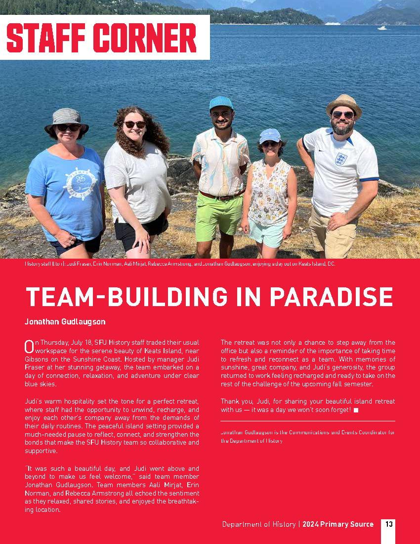 The SFU History Decolonization Newsletter, Vol 1 was conceived of and written by the history department's Decolonization and Indigenization Research Assistants, Ashley Kyne and Zaina Khan.
