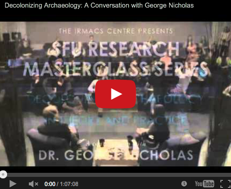 Friday, January 31, 2014 The IRMACS Centre's Research Masterclass Series features prominent SFU researchers telling the story of their research path and the "best practices" and tips they learned along the way - how they came to be interested in the topic, how their research directions have changed over the years, shifts in direction, who their collaborators are and how they developed these collaborations. Each event is a sit down session with an interviewer, rather than a standard academic presentation. The interview will be followed by a Q&A. The series kicked off on January 31st, 2014, with an interview of George Nicholas by SFU Indigenous Initiatives Librarian, Jenna Walsh.
