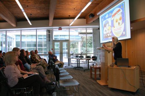 The public symposium on “Cultural Commodification, Indigenous Peoples, and Self-Determination” drew approximately 100 people to hear nine presentations from scholars and community representatives. After an opening welcome from Musqueam elder Victor Guerin and introductory remarks by IPinCH Director George Nicholas, symposium speakers addressed three broad themes related to commodification. In the first thematic session, focused on better understanding processes of commodification, speakers explored the ‘who, what, why, and how’ of commodification. Susan Rowley of the UBC Museum of Anthropology gave an engaging talk on the case of ‘Ookpik’, an Inuit owl doll marketed by the Canadian government in the 1960s. IPinCH ethnographer Alexis Bunten explored the limits of cultural commodification, drawing on Marxian ideas about ‘commodities’ and referencing a wide range of examples (including the commodification of used women’s underwear!). IPinCH Fellow Nicole Aylwin rounded out this session by looking at how pan-African cultural policies have led to the commodification of ‘traditional’ African art forms.