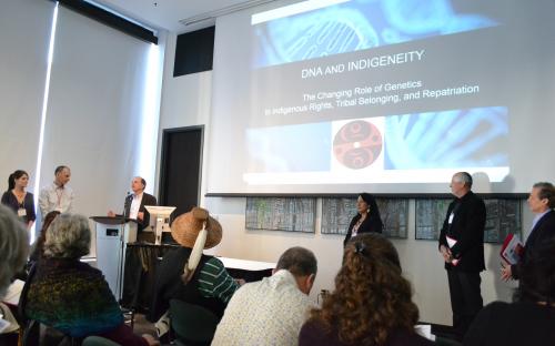 The first session focused on the promise and perils of using genomics in constructing and interpreting Indigenous identities and featured presentations from Armand Minthorn, a religious leader and member of the Board of Trustees of the Confederated Tribes of the Umatilla Indian Reservation, Deborah Bolnick, Associate Professor at University of Texas at Austin, and Alan Goodman, Professor of Biological Anthropology at Hampshire College.