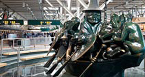 Consistently, users rate YVR as one of the top 10 Airports in the world. In addition to 160 shops and services, one of the highlights of a visit to this airport is an opportunity to see the public art exhibits featuring the "The Spirit of Haida Gwaii, The Jade Canoe", the now famous bronze sculpture by Bill Reid located at the entrance of the International Terminal.