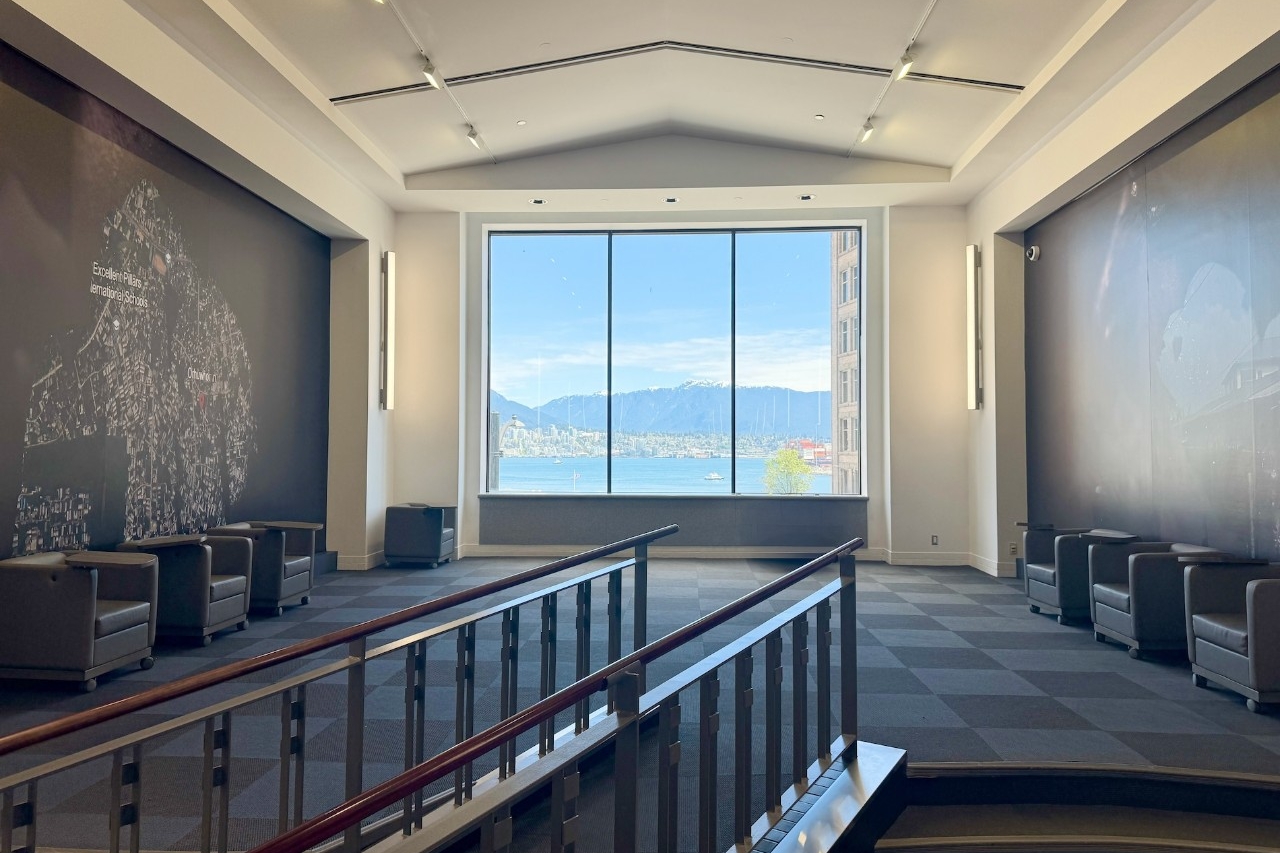 Our dedicated gallery space, the HC Gallery is ideal for small receptions, presentations and press conferences. With floor to ceiling windows overlooking the North Shore mountains and the port of Vancouver, this licensed area has contemporary artwork on the walls and views from the windows.