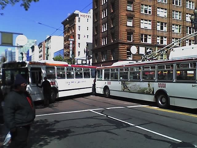 PCC 1008 was fitted with a pantograph and it went into the Muni tunnel underneath