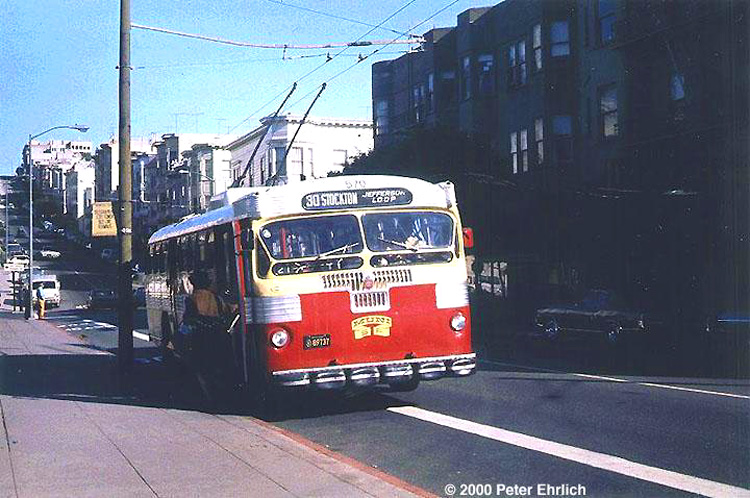 Flyer E60s on Mission St.Photographer unknown. JUN 1997.