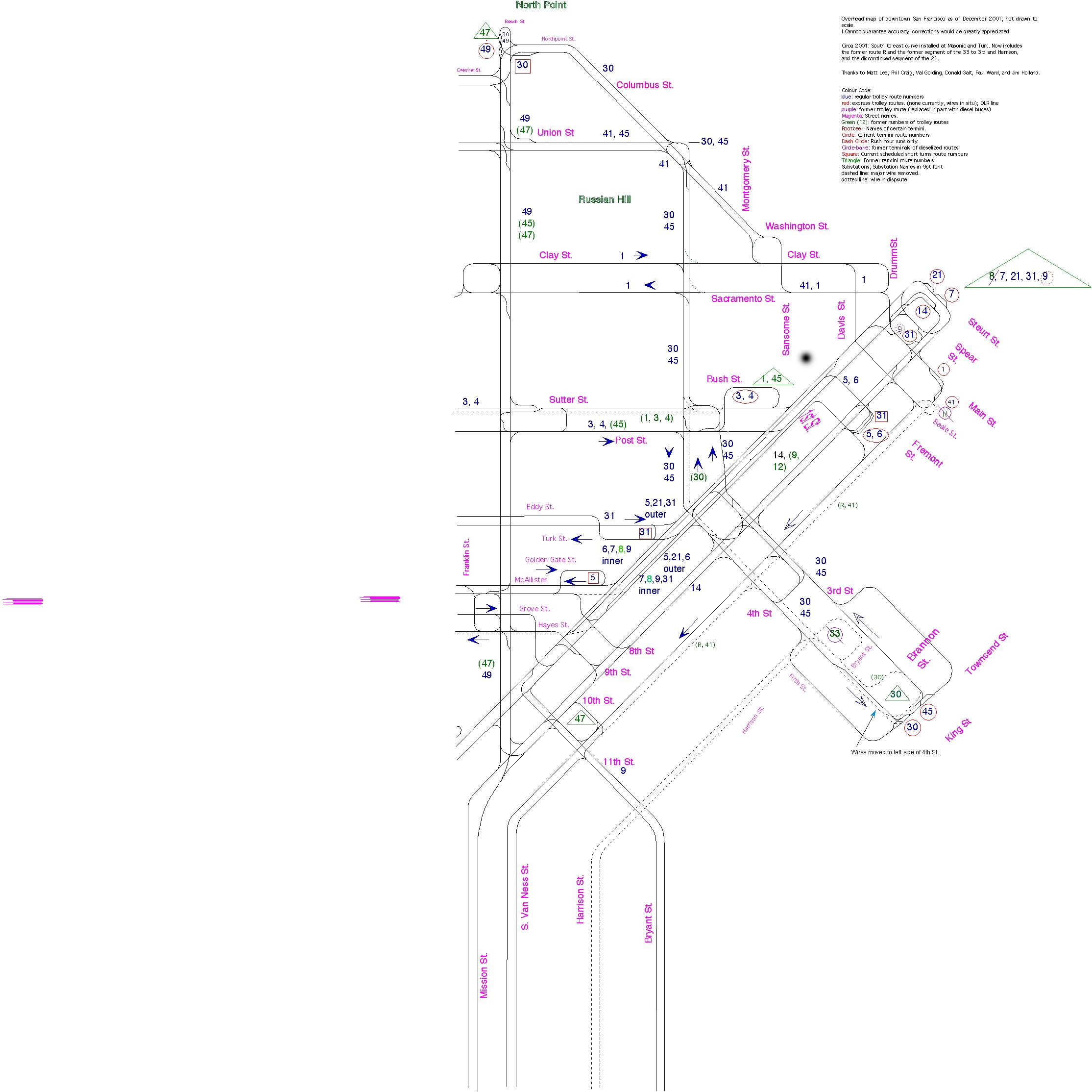 Downtown Overhead Map of Muni's Electric Trolleybus System--Septermber 2006.