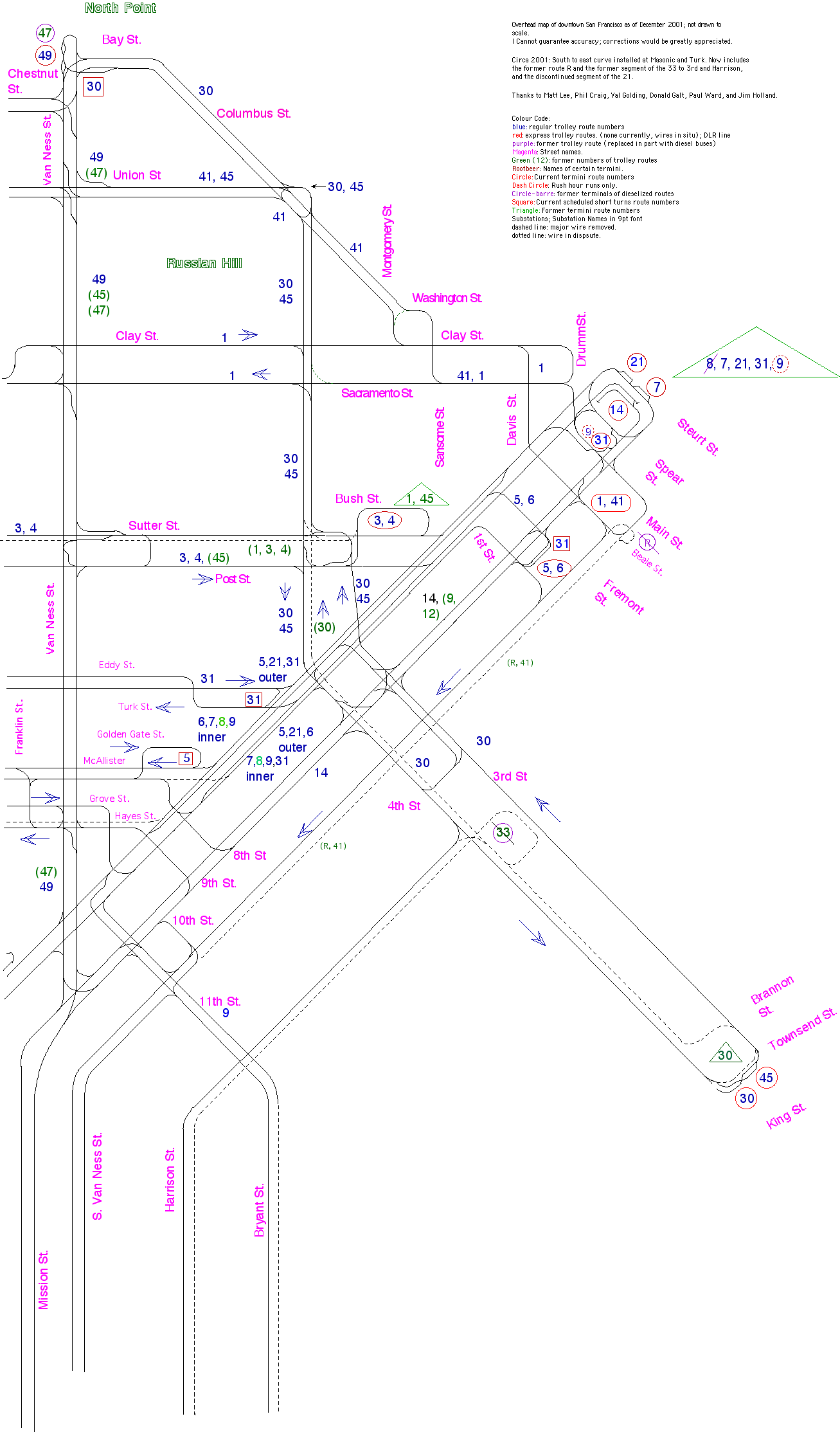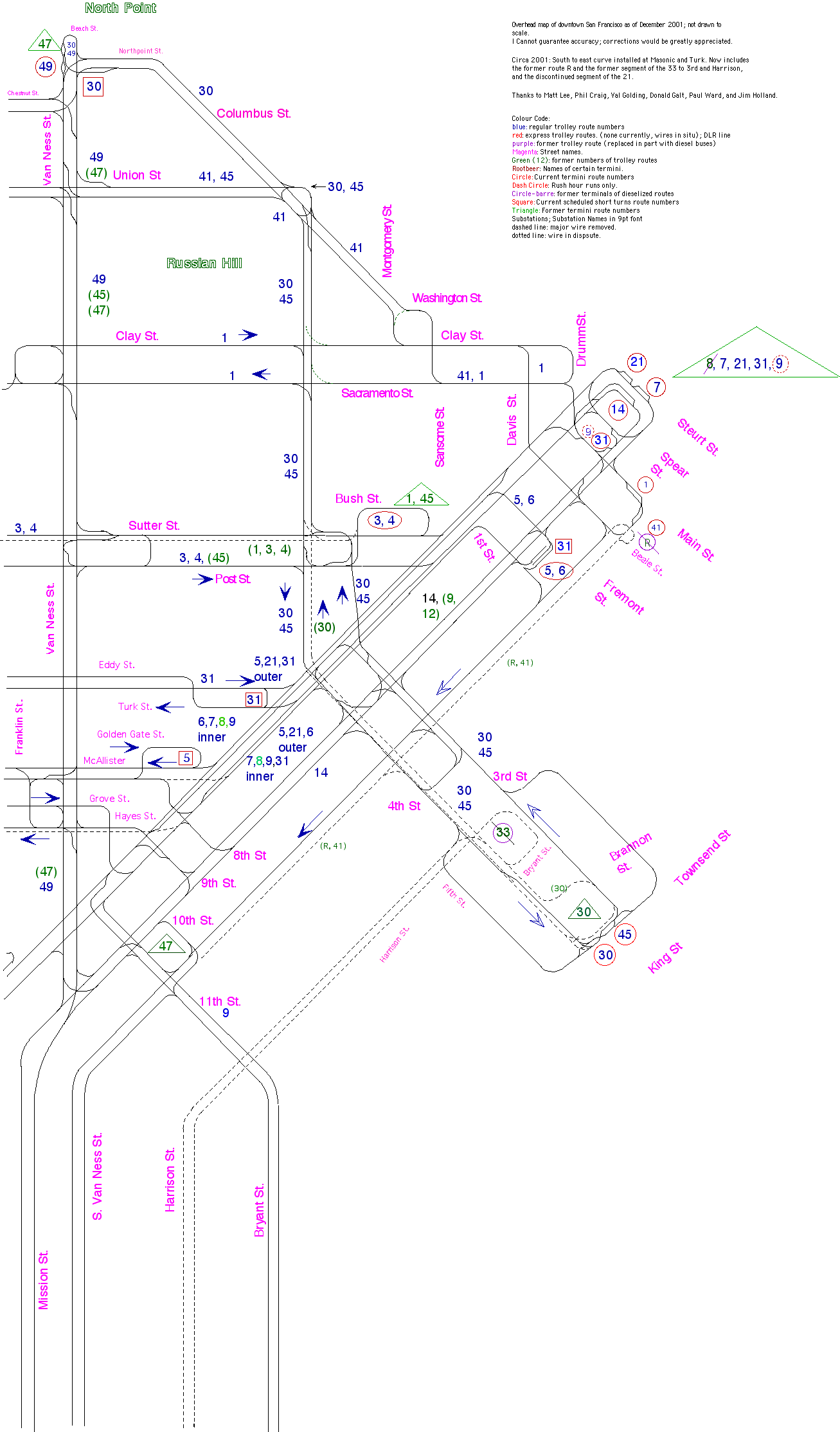 Overhead Map of Muni's Electric Trolleybus System--early 2001.