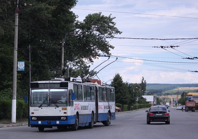 ROCAR 217E #104 in the Bulevardul Ecaterina Teodoroiu. There are two trolley lines. The main line has a 10 - 14 minute headway. The other line has a 60 minute headway. Photo by Maciej Banasinski. 22 Jul 2011. Courtesy of TrolleyMotion.