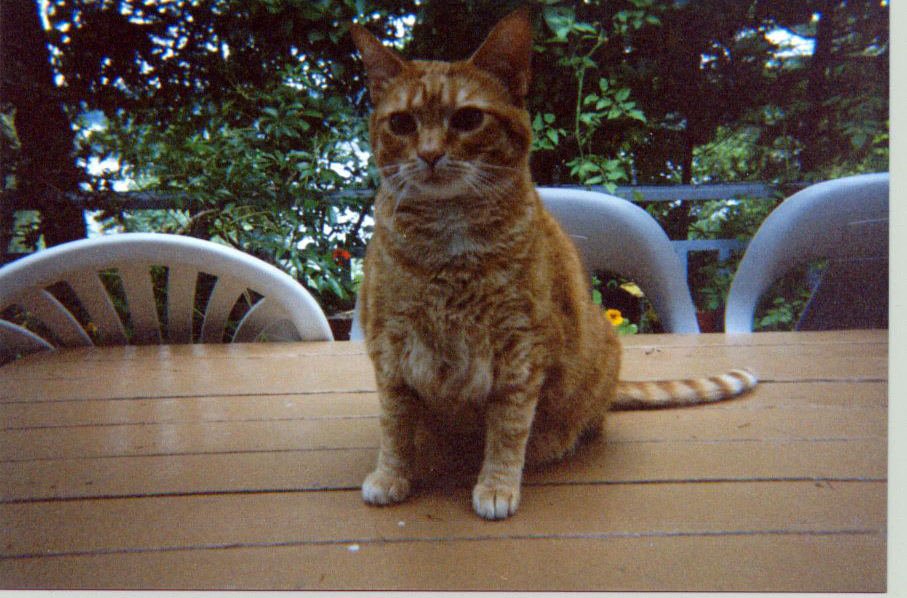 Stumpy, a crippled racoon who has adopted us in some sense of the word, resting on the sundeck. March 2004.