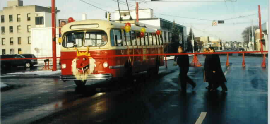 ETS CCF-Brill #148 arrives at the Gate of Happy Arrival for the Official Ribbon Cutting Ceremony at 97th St and 107A Ave.