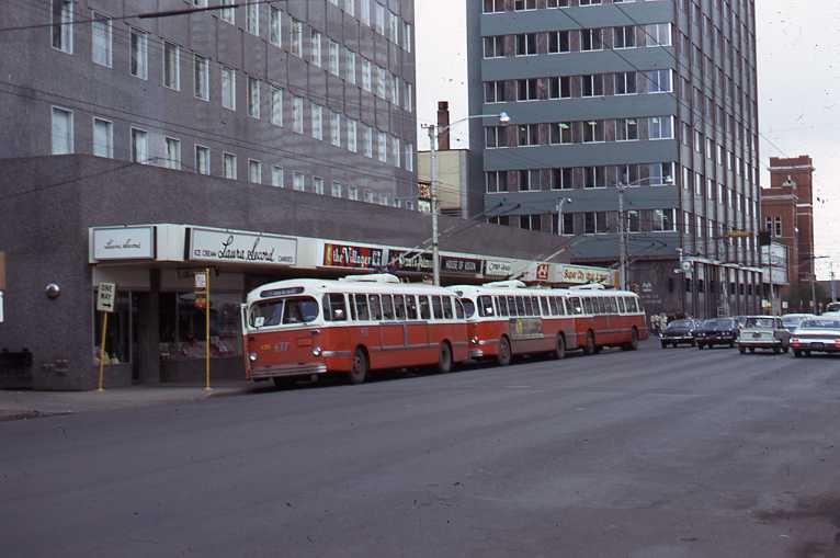 Three Brill T-44s lined up in downtown Edmonton. Photo by Angus