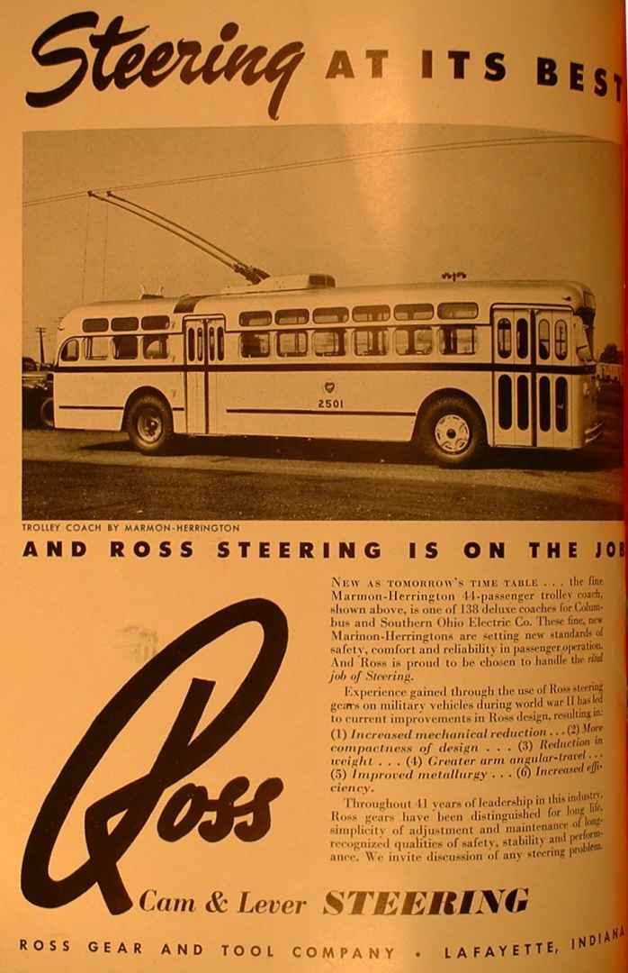 Ad by Ross Cam & Lever Steering featuring Marmon Herring 2501. Photographer unknown. 1948.