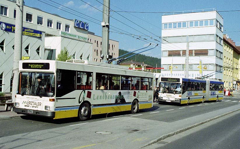 a trolleybus wth a diesel auxiliary engine, in electric service,