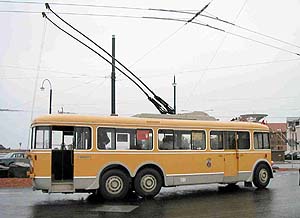 First generation Copenhagen a 1937/38 General Elecric three axle trolleybus,