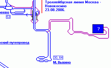 Schematic Overhead Map of Moscow (blue = trolleybus, red = streetcar, purple = non-revenue wire)