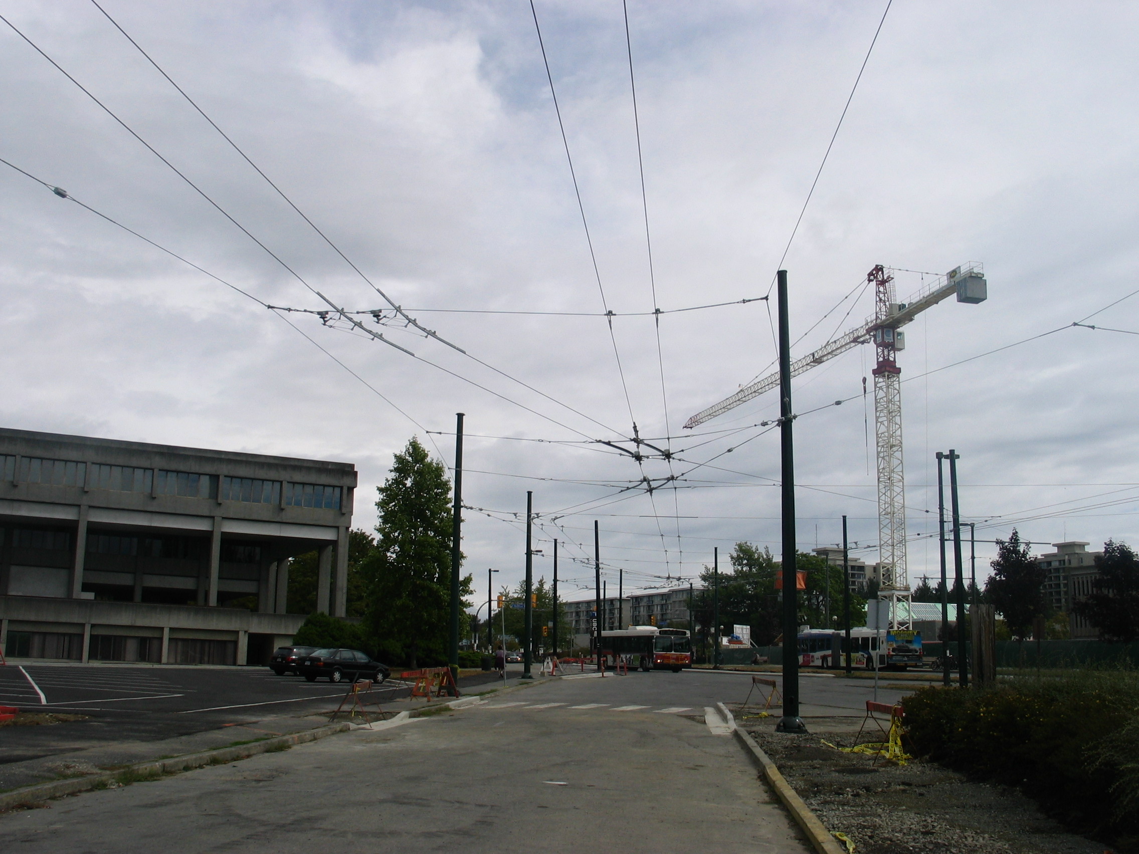 The second and the third passing tracks at the new UBC Loop replacing the older one, which is to be removed for construction of new building. These loops are temporary. In about two years the loop will be in the lower level of the new building. Photo by R. C. DeArmond. 22 AU 04.
