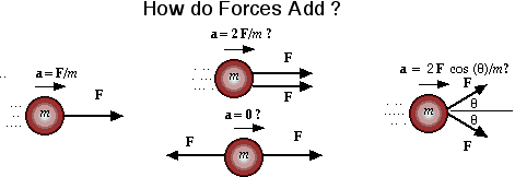 Another reasonable guess would be that when two forces are pulling in opposite directions, the net effect is zero force and zero acceleration. Is it?